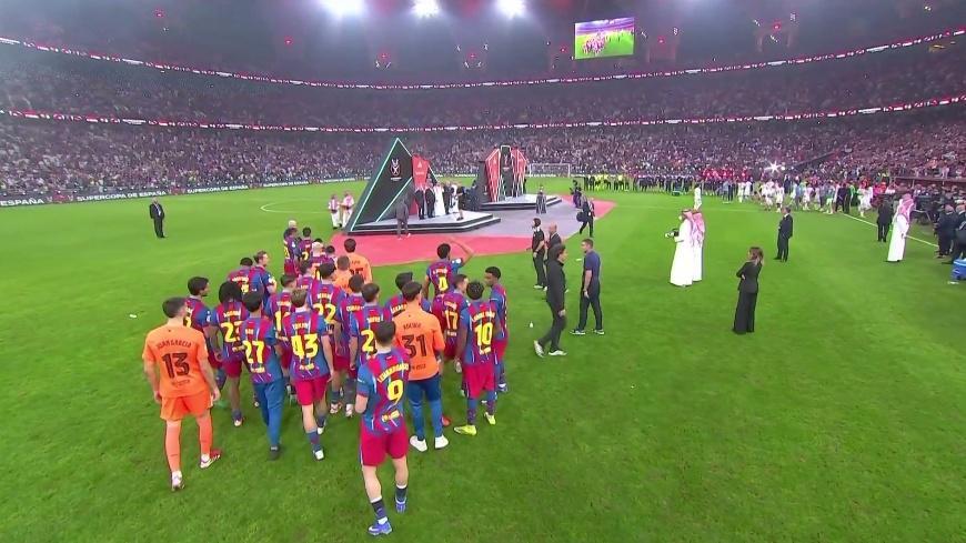 在北京时间1月12日结束的西班牙超级杯决赛中,皇马2-3不敌巴萨,无缘夺冠。而赛后,皇马球员在颁奖仪式上的行为也引发争议,因为他们似乎并没有按照常规流程为巴萨列队。